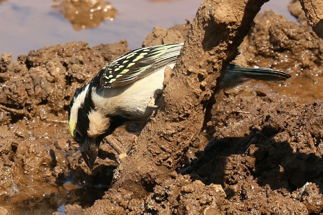 4653 This is an adult acacia pied barbet. Juveniles lack the red forehead