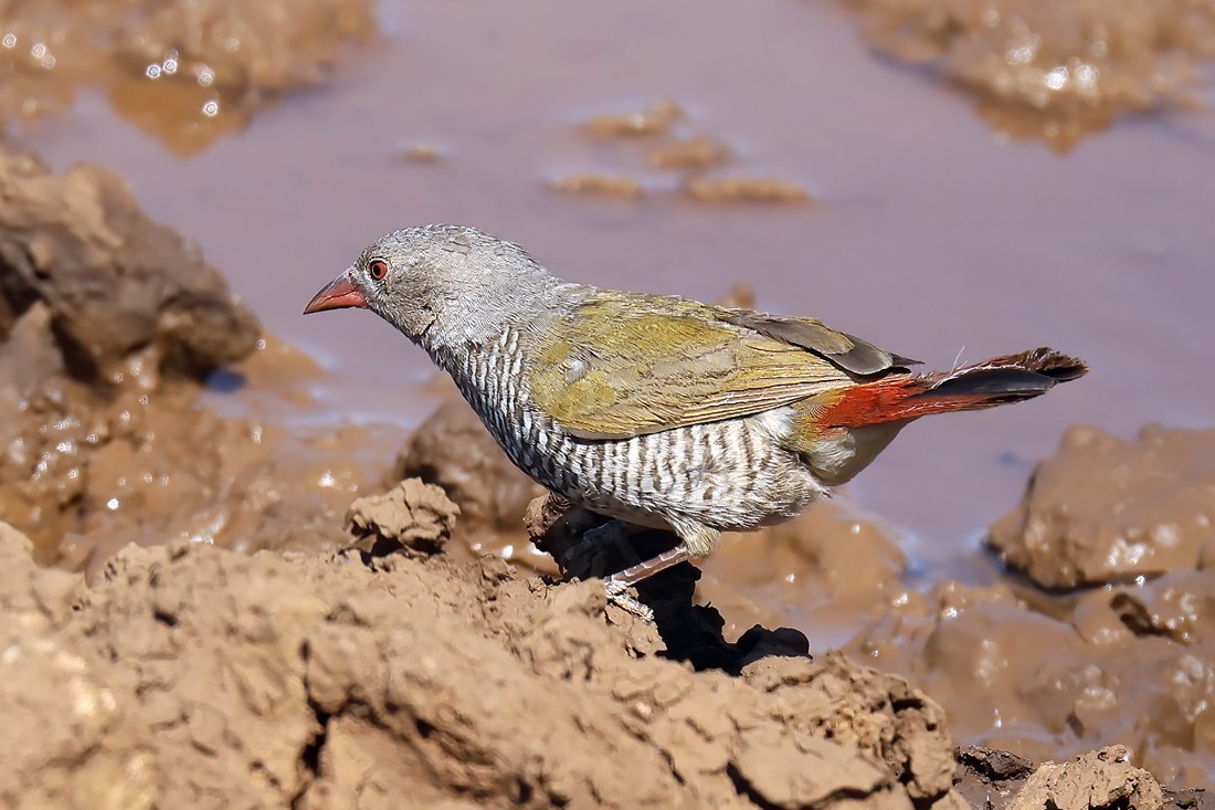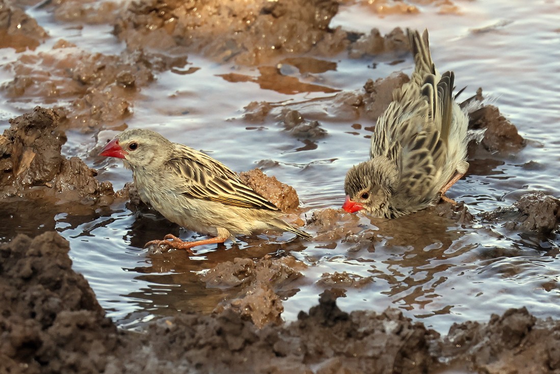 4656 Red-billed queleas in non-breeding plumage, enjoying a bath