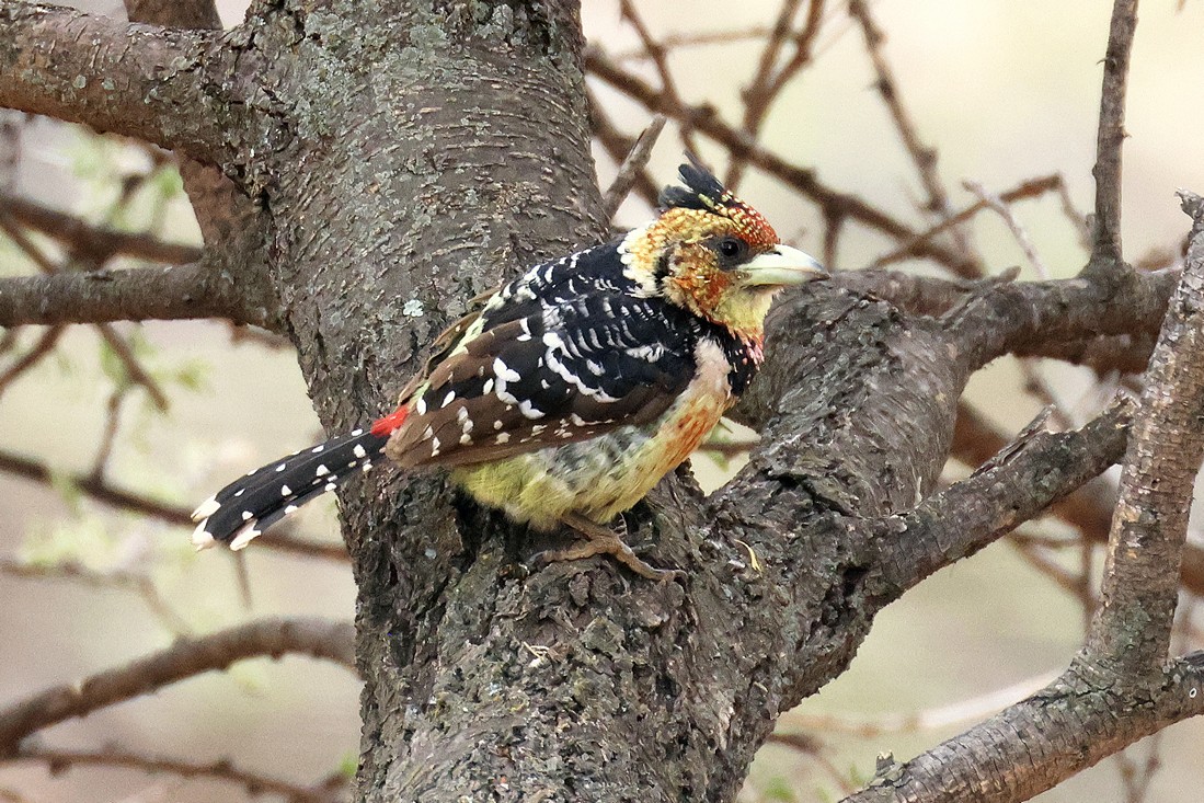 4629 The crested barbet is common in woodlands in Northern and North Eastern South Africa