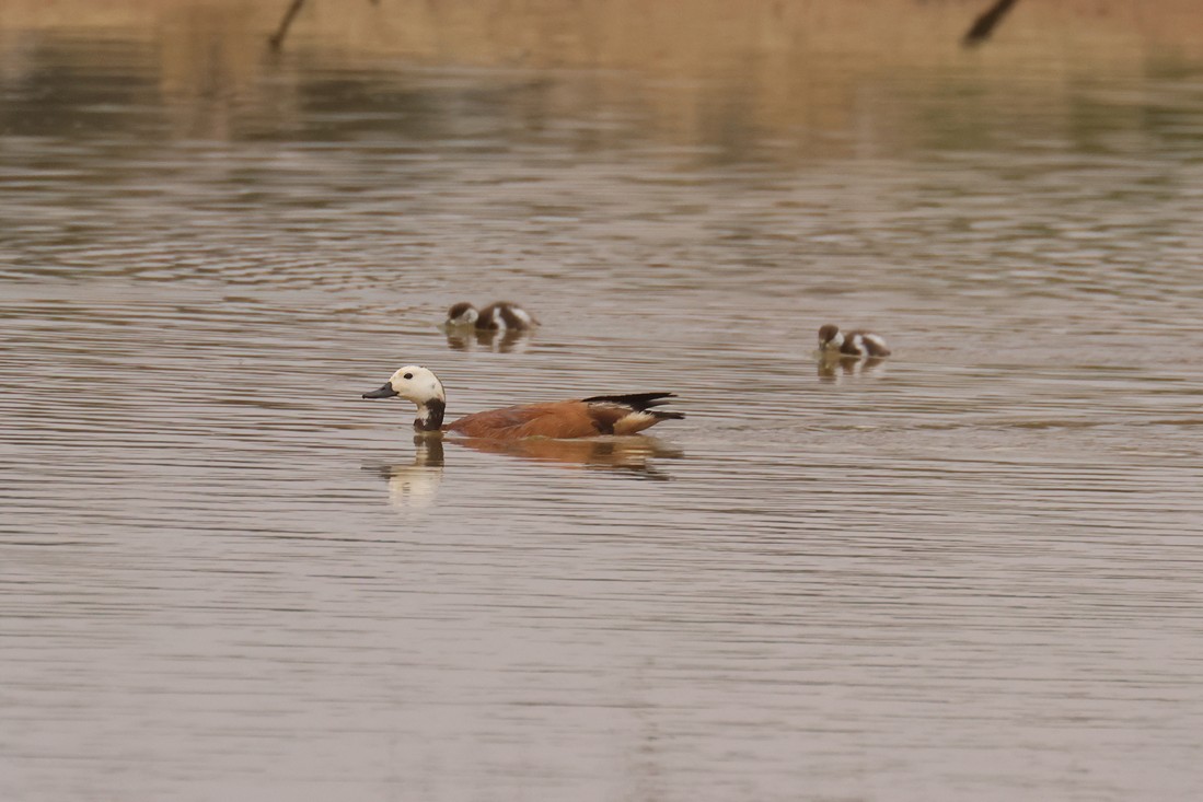 4643 A female South African Shelduck with chicks. Nests in holes in the ground, especially old aardvark burrows