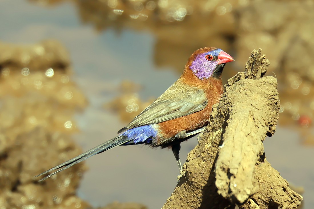 4659 A stunningly coloured male violet-eared waxbill. Females have more buffy underparts
