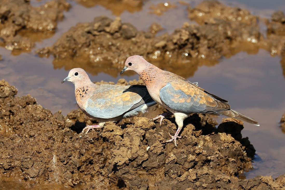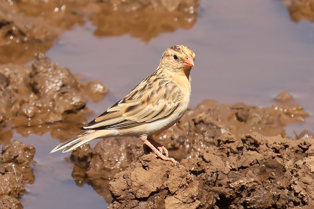 4656 Red-billed queleas in non-breeding plumage, enjoying a bath